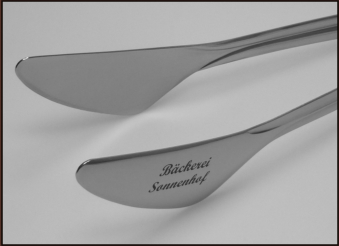 Werbung geschickt platziert ......  Wie können Sie Ihrem Kunden in Erinnerung bleiben? Verwenden Sie unsere Gebäckzangen für Ihre Werbung via Lasergravur.